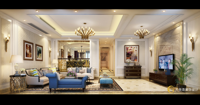 本案设计风格为新古典,整个空间基调既端庄华美又不失自然清新。