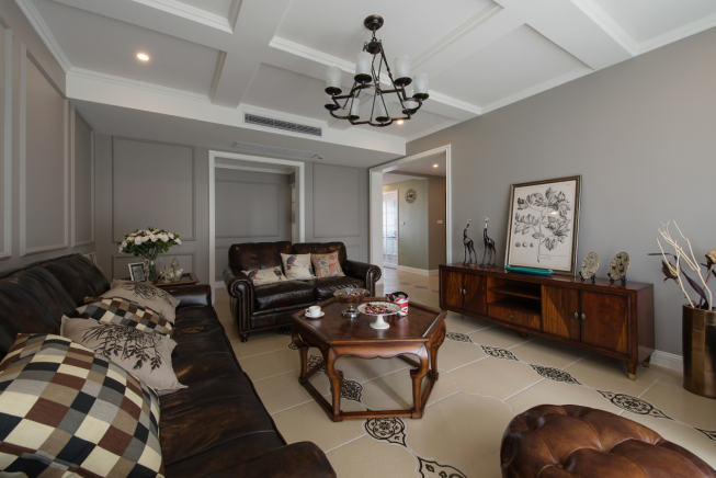 此案采用简约复古美式风格,美式家具颜色沉稳,极具低调奢华质感。