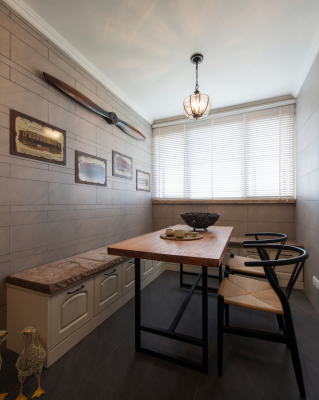 餐厅墙面刷了芥末绿,淡淡的恰到好处,给用餐营造了愉快的氛围,餐桌用的是深色的实木家具,端庄大气又温馨。